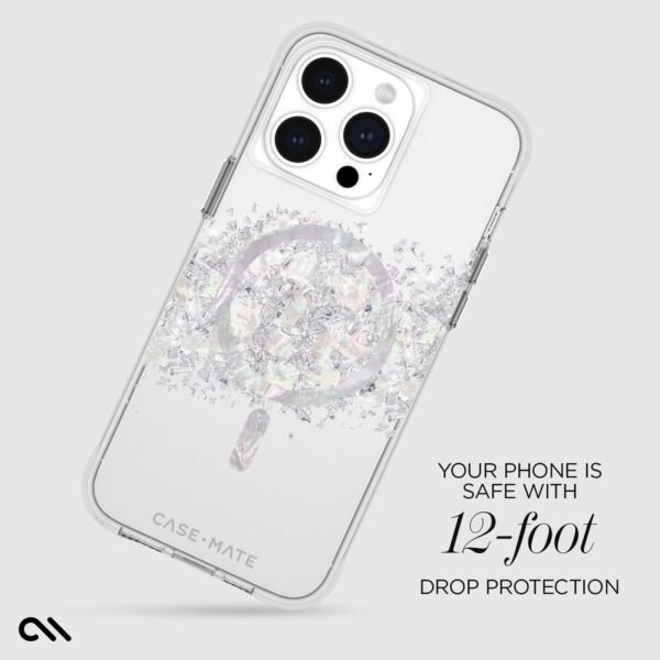 Pretty in pearls— the Touch of Pearl MagSafe Phone Case for the iP 15 Pro Max features genuine Mother of Pearl elements with an irresistible pearlescent design. We know how much you love your phone. so feel confident knowing it’s safe with 12-foot drop protection while strong built-in magnets allow for easy MagSafe accessorizing and charging.